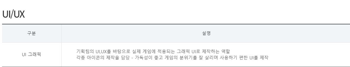 개발은 게임기획과 프로그래밍/ 게임디자인은 2D원화, 3D그래픽, UI디자인으로 나뉩니다